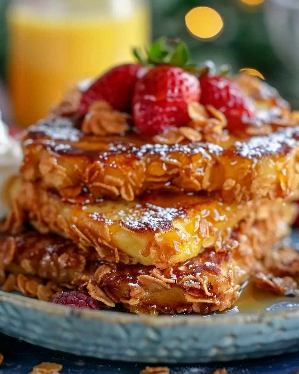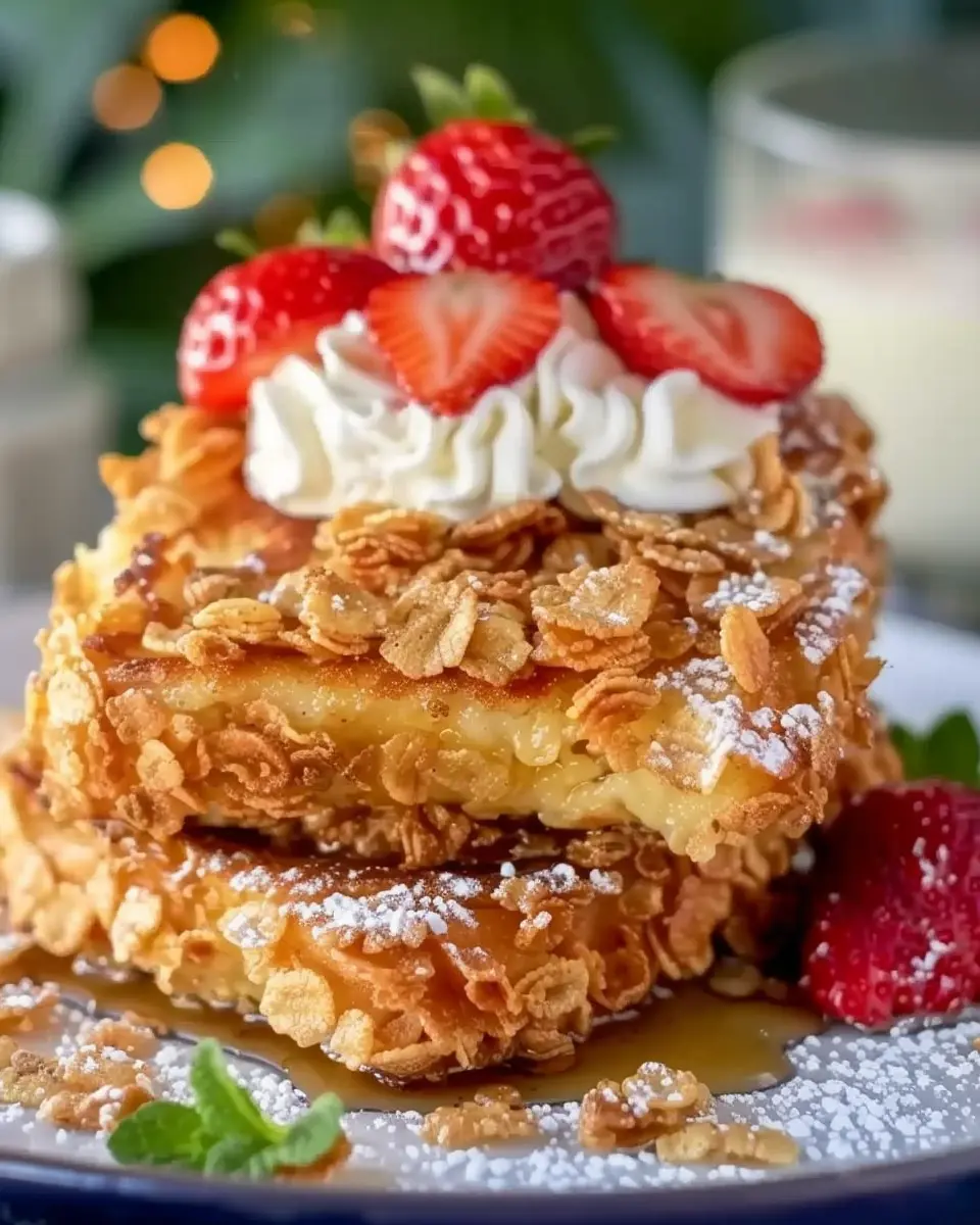 Transform your Disneyland Cornflake Crusted French Toast Recipe with delectable toppings! Fresh fruit is a classic choice—try ripe strawberries, blueberries, or bananas for a vibrant touch. Drizzle warm maple syrup or a luscious caramel sauce to add that sweet finish. For a gourmet twist, sprinkle crunchy nuts or whipped cream on top. Don’t forget a light dusting of powdered sugar to make your dish as pretty as it is tasty!