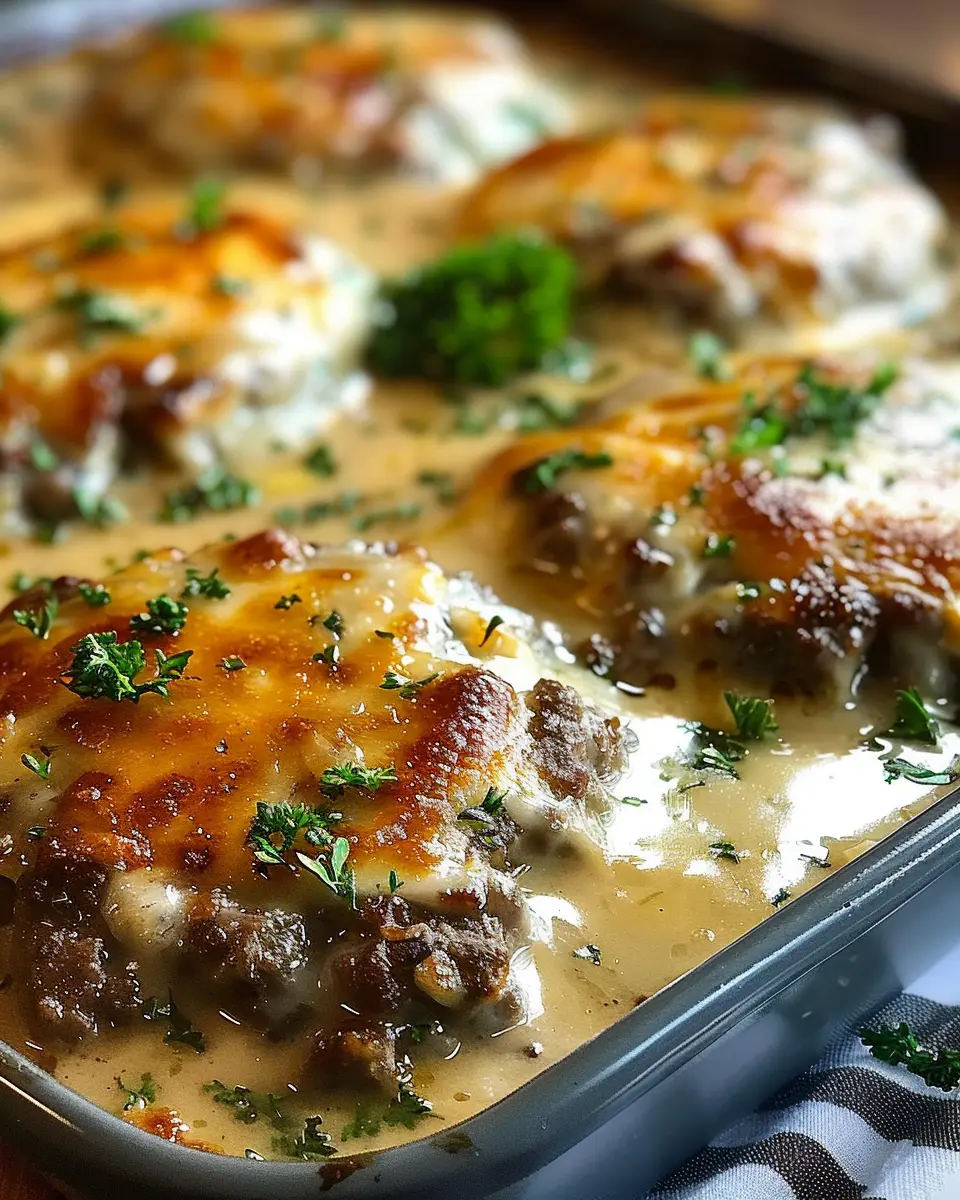 At last! Preheat your oven to 350°F (175°C). In a baking dish, arrange the browned patties and pour the creamy gravy over the top. Cover with aluminum foil and bake for about 30 minutes. This not only ensures the patties are fully cooked but also allows them to absorb the savory gravy.