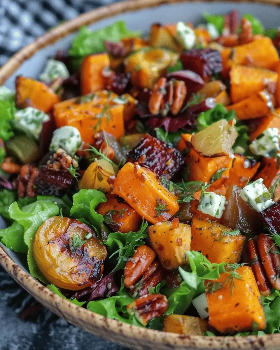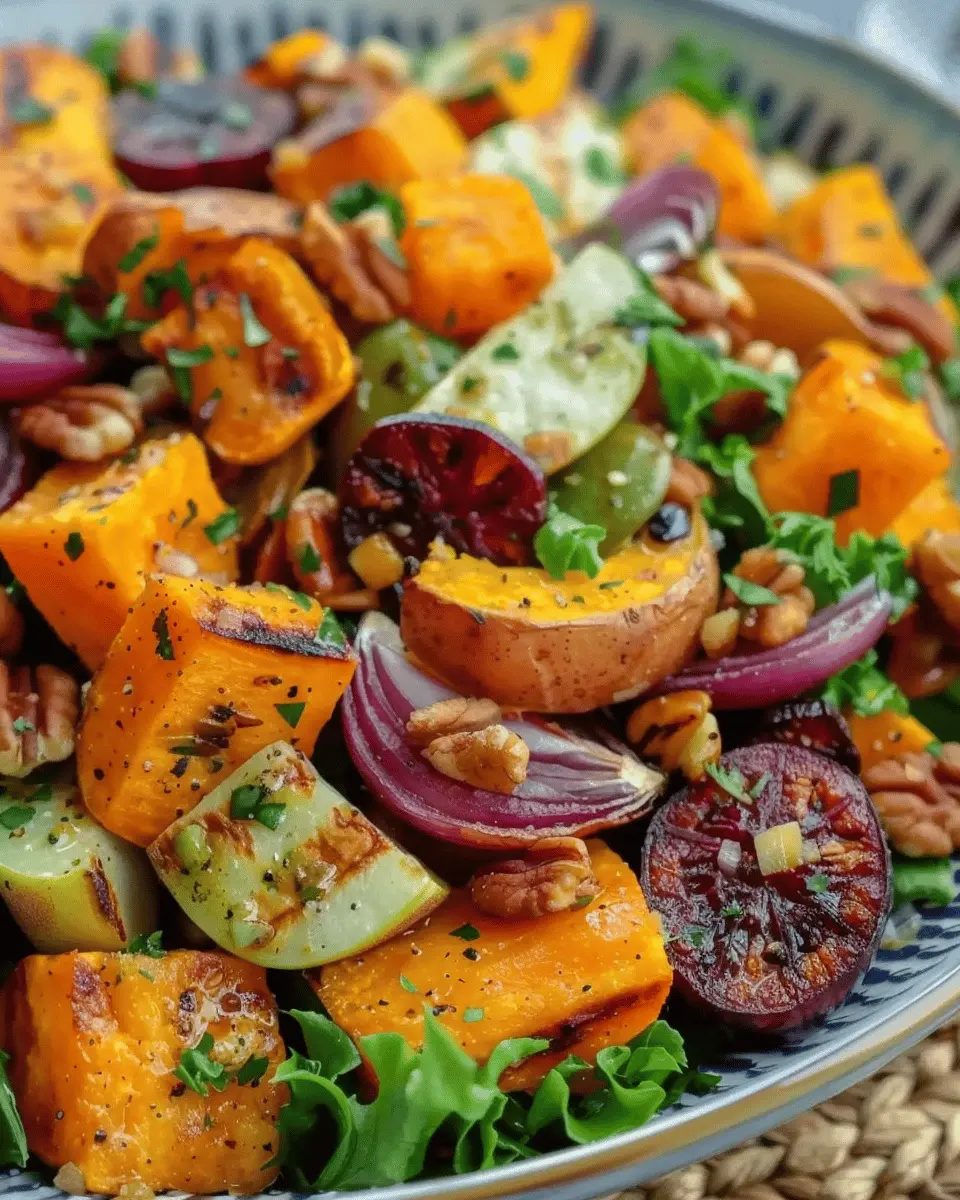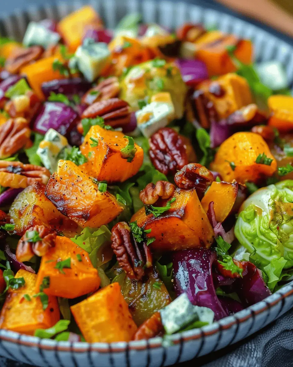 This salad is not only a feast for the eyes but also a wholesome choice. Did you know that incorporating seasonal veggies can boost your nutrient intake? Studies highlight that fresh, local produce often contains more vitamins due to reduced travel time from farm to table. So, why not elevate your fall dining experience and impress your guests? Add this gorgeous salad to your table, and enjoy the depth of flavors it brings to every bite!