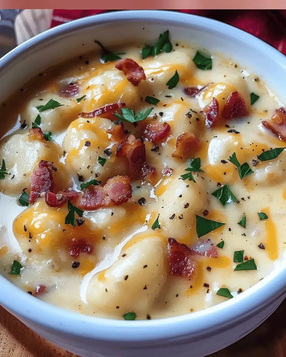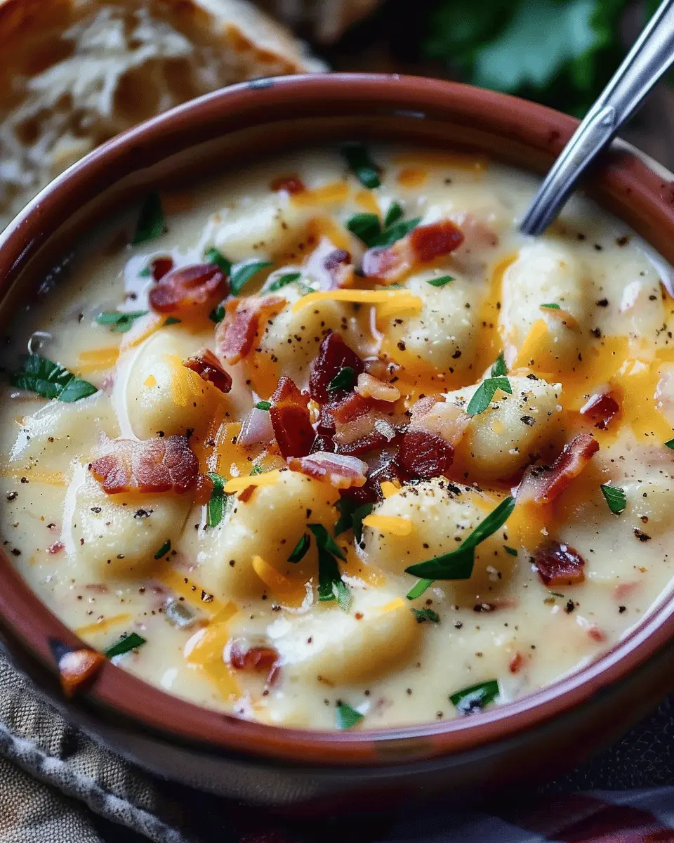 A creamy, savory soup that combines the rich flavors of bacon and cheddar with tender gnocchi.