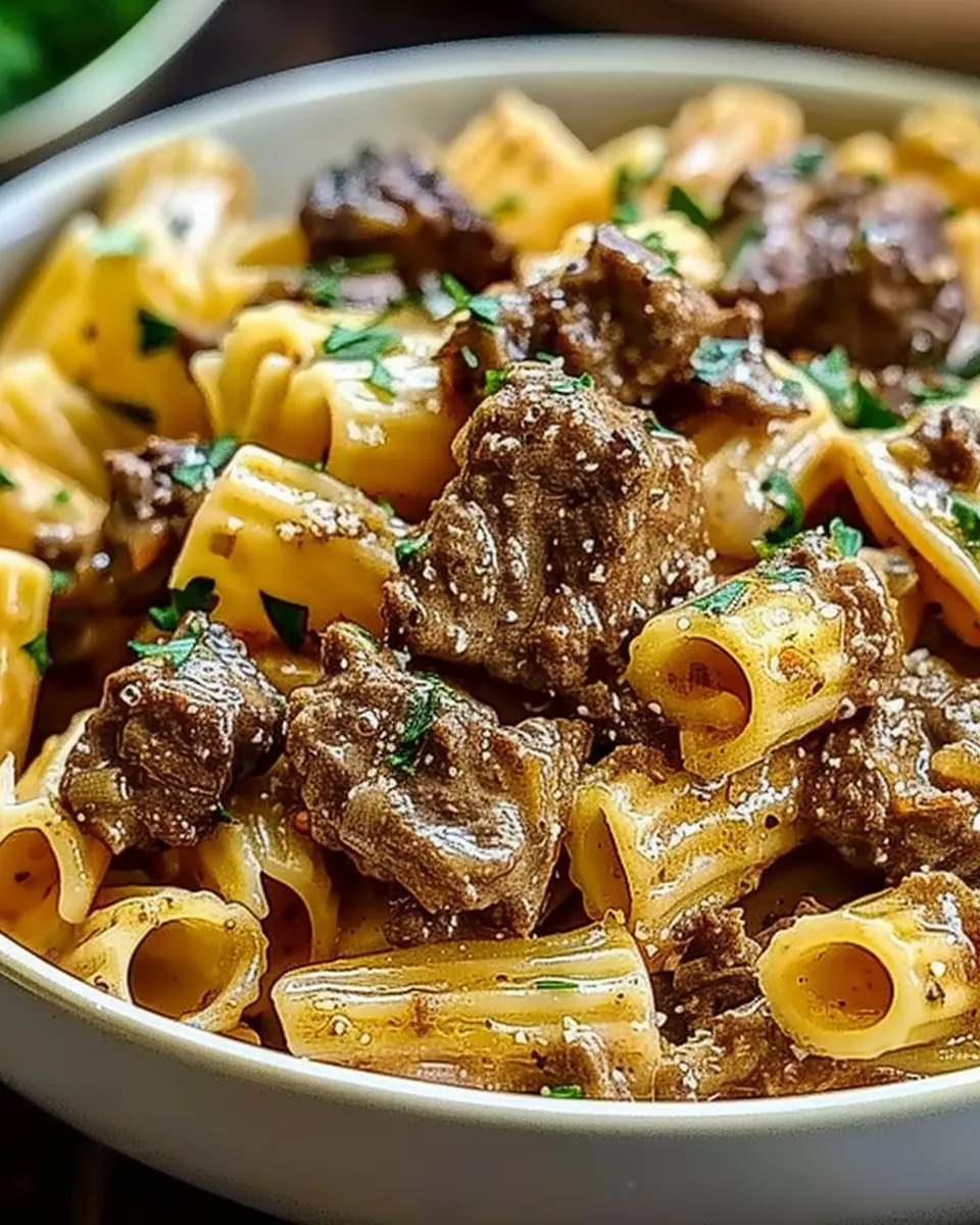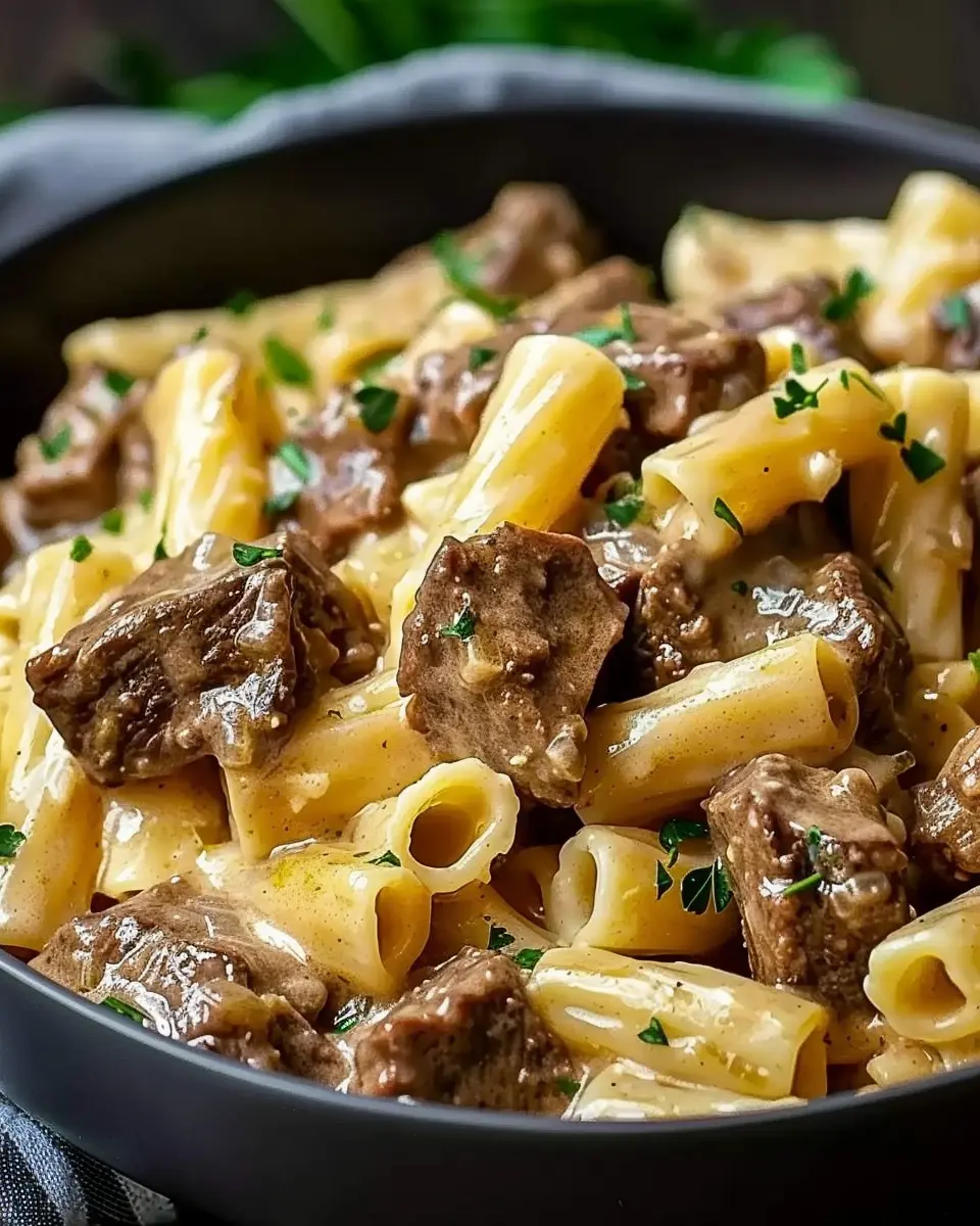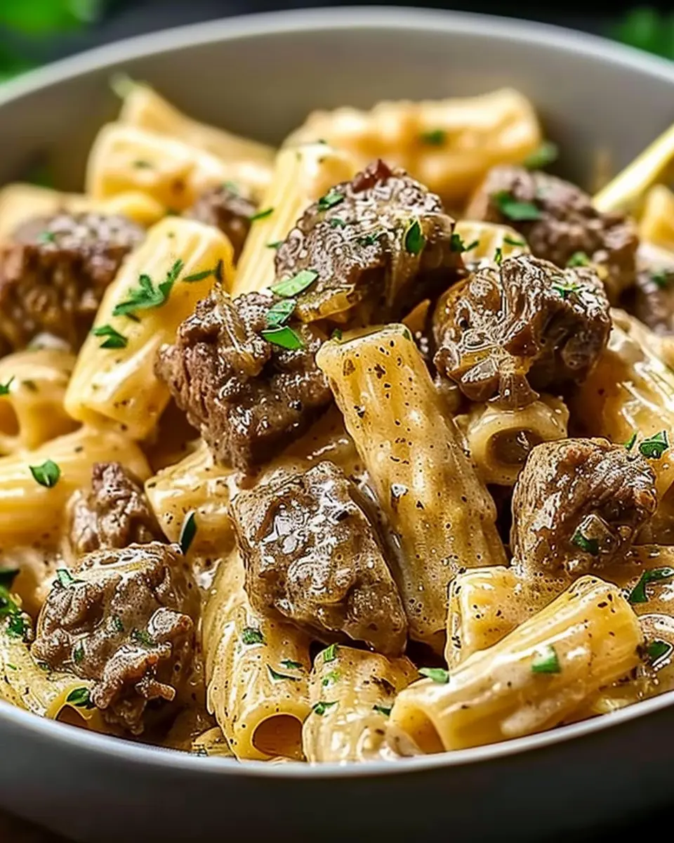 Keywords: Beef Pasta, Creamy Garlic Sauce, Pasta Recipes