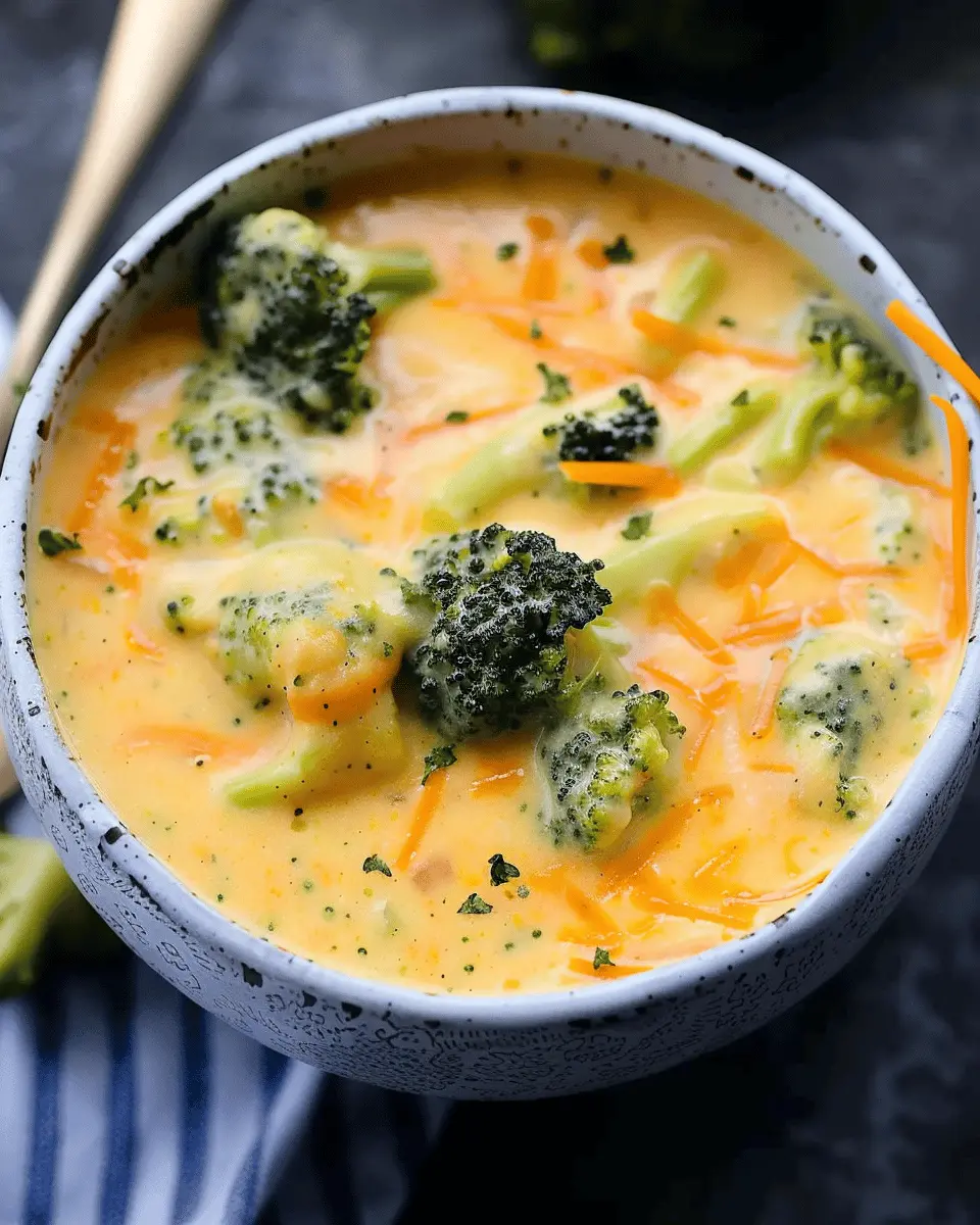 Quick and Easy Preparation: With minimal ingredients and simple steps, you can whip up a delicious pot of broccoli cheddar soup in under 30 minutes. Perfect for those weeknights when you need something hearty but don’t have hours to spend in the kitchen.