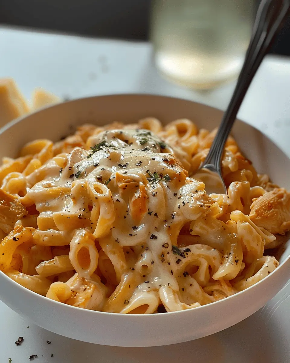 Presentation can enhance your dining experience. Try plating the cheesy chicken pasta in a large bowl for a rustic family-style meal. Garnish each portion with fresh herbs like parsley or basil to add a pop of color. For an upscale touch, use individual pasta dishes and drizzle a bit of olive oil for a polished finish.