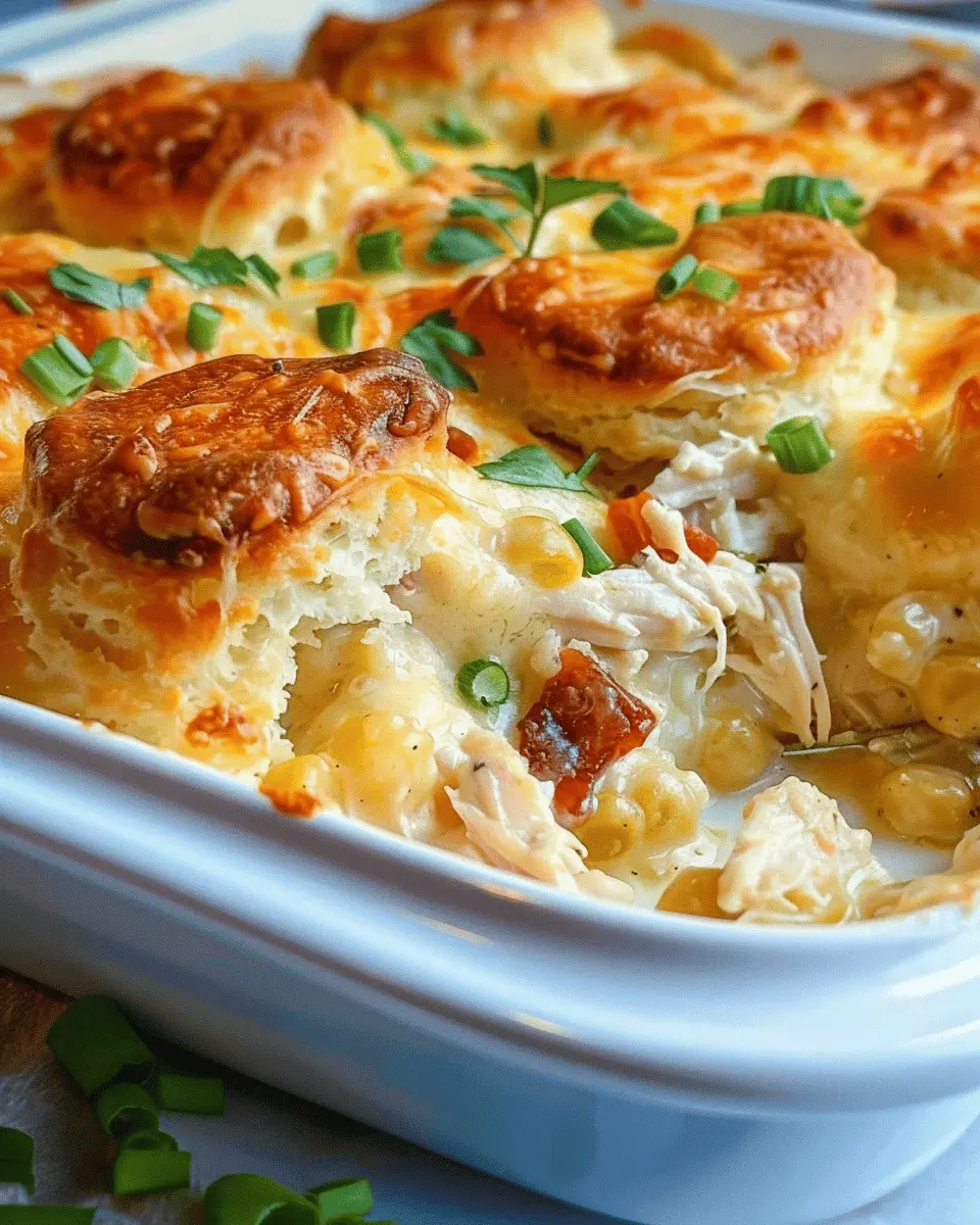 • Cheese, Please: Toss in some shredded cheese, like sharp cheddar, for a rich flavor that melds beautifully with the chicken and biscuits.