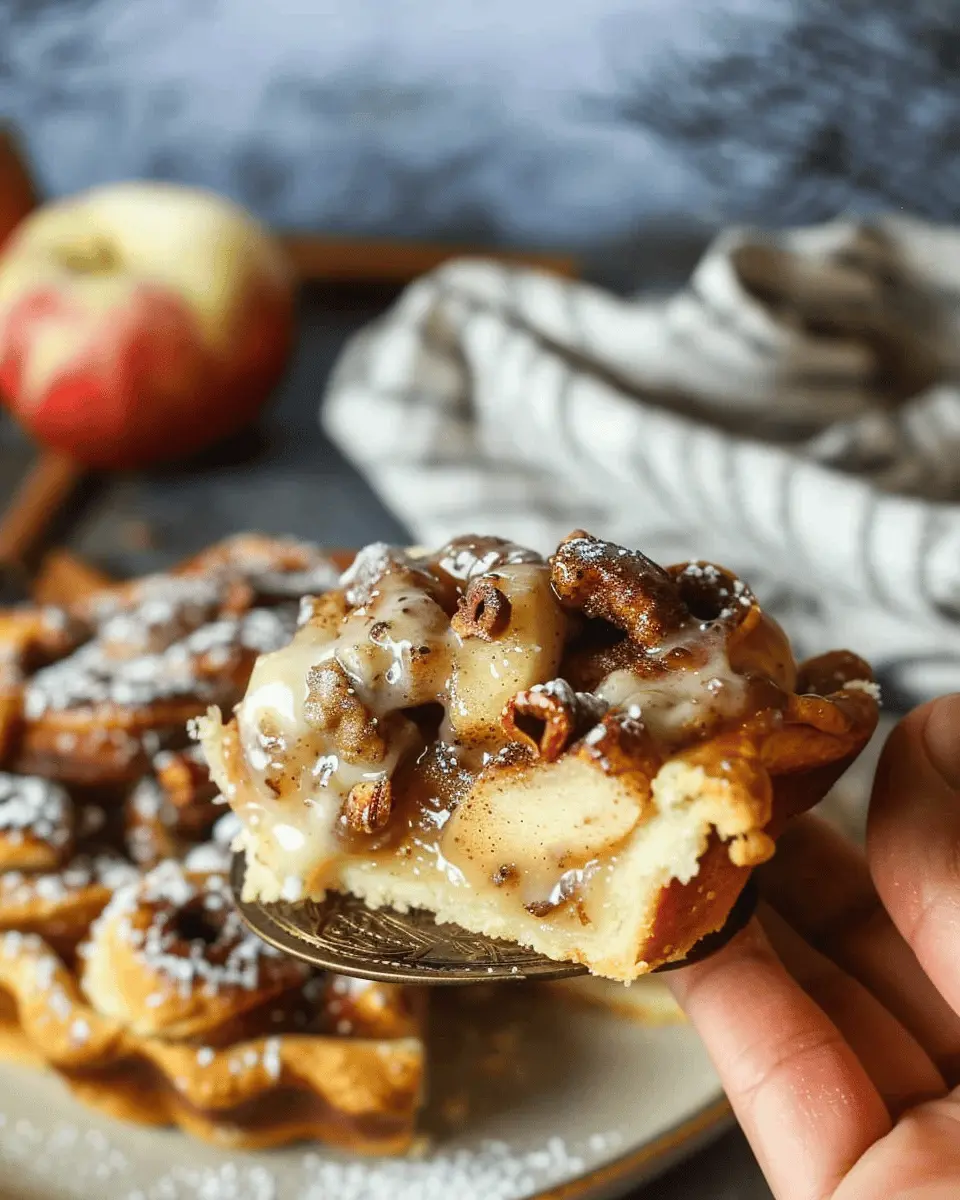 Impressive Aesthetics: The unique layering of cinnamon rolls with sweet, spiced apples not only pleases the palate but also impresses your friends and family. Who wouldn’t want to share a slice of this gorgeous pie over a cozy weekend gathering or casual dinner?