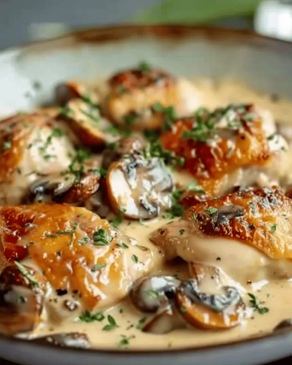 PrintCreamy Garlic Mushroom Chicken Thighs: An Easy Heartwarming Dinner
