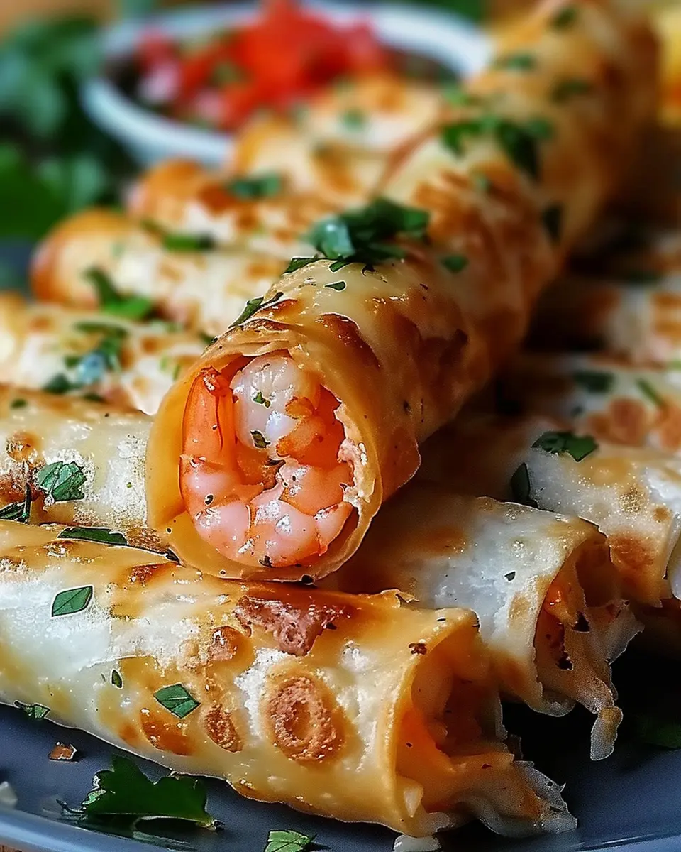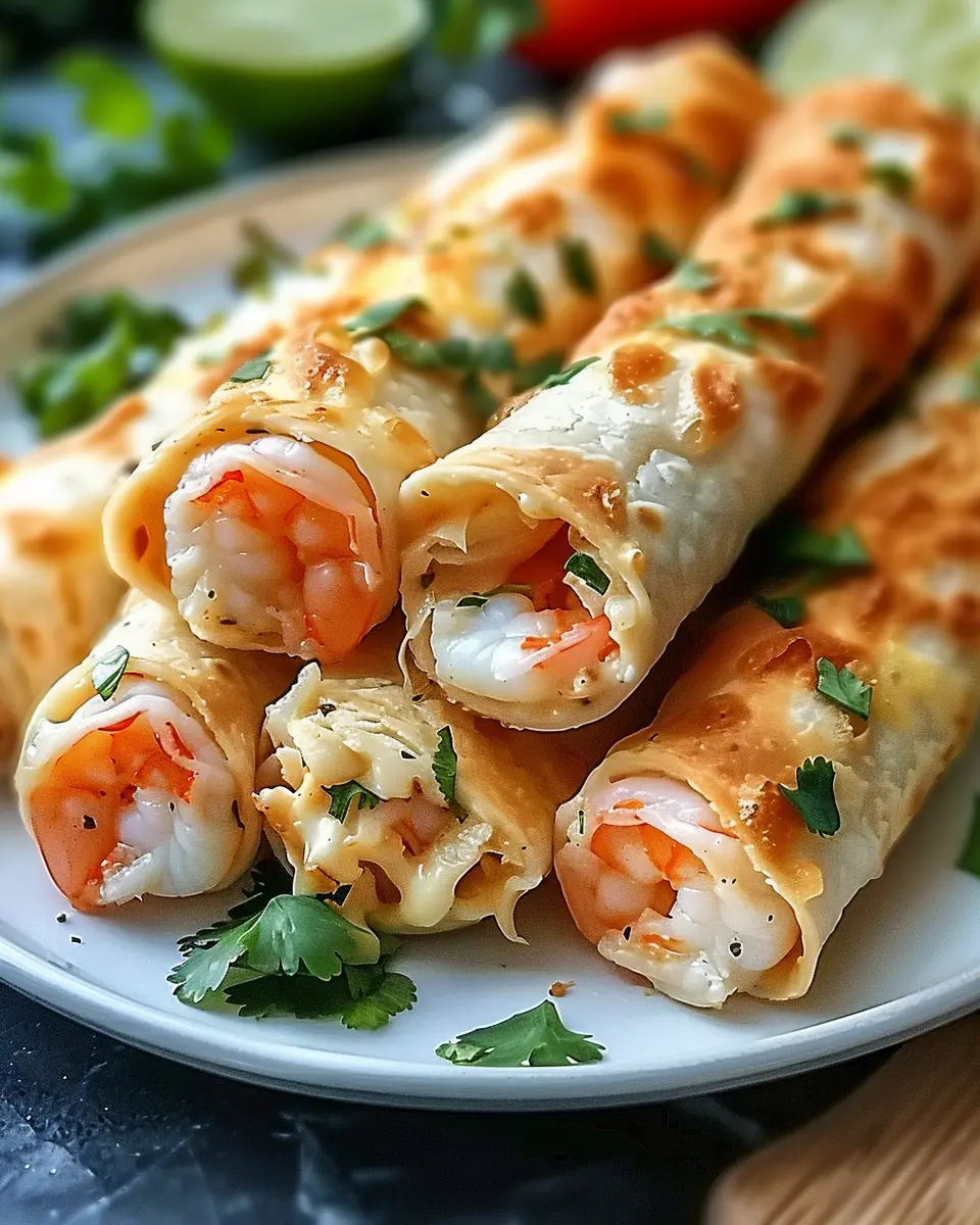 Discover the delightful combination of crab and shrimp in these crispy taquitos, perfect for a cozy night in.