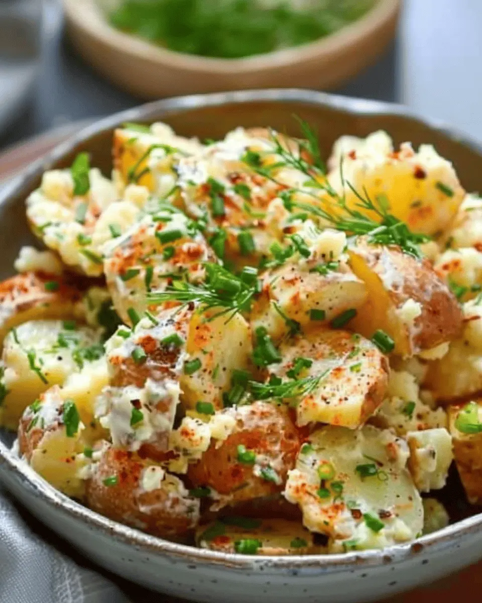 Serve your crispy smashed potato salad warm or at room temperature, garnished with additional fresh herbs or toppings. This dish is versatile—great for barbecues, picnics, or as a part of a cozy dinner at home. Your friends will surely ask for seconds!