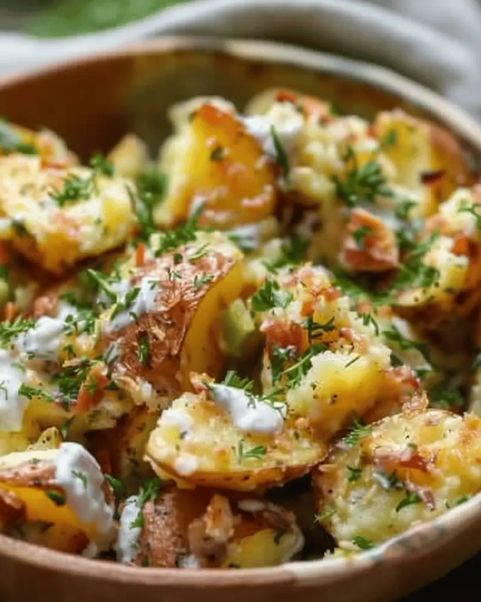 PrintCrispy Smashed Potato Salad with Turkey Bacon for Food Lovers
