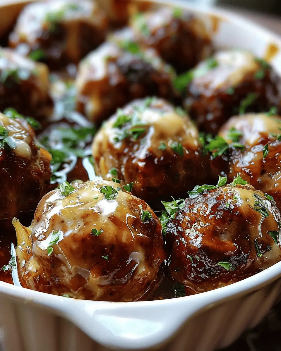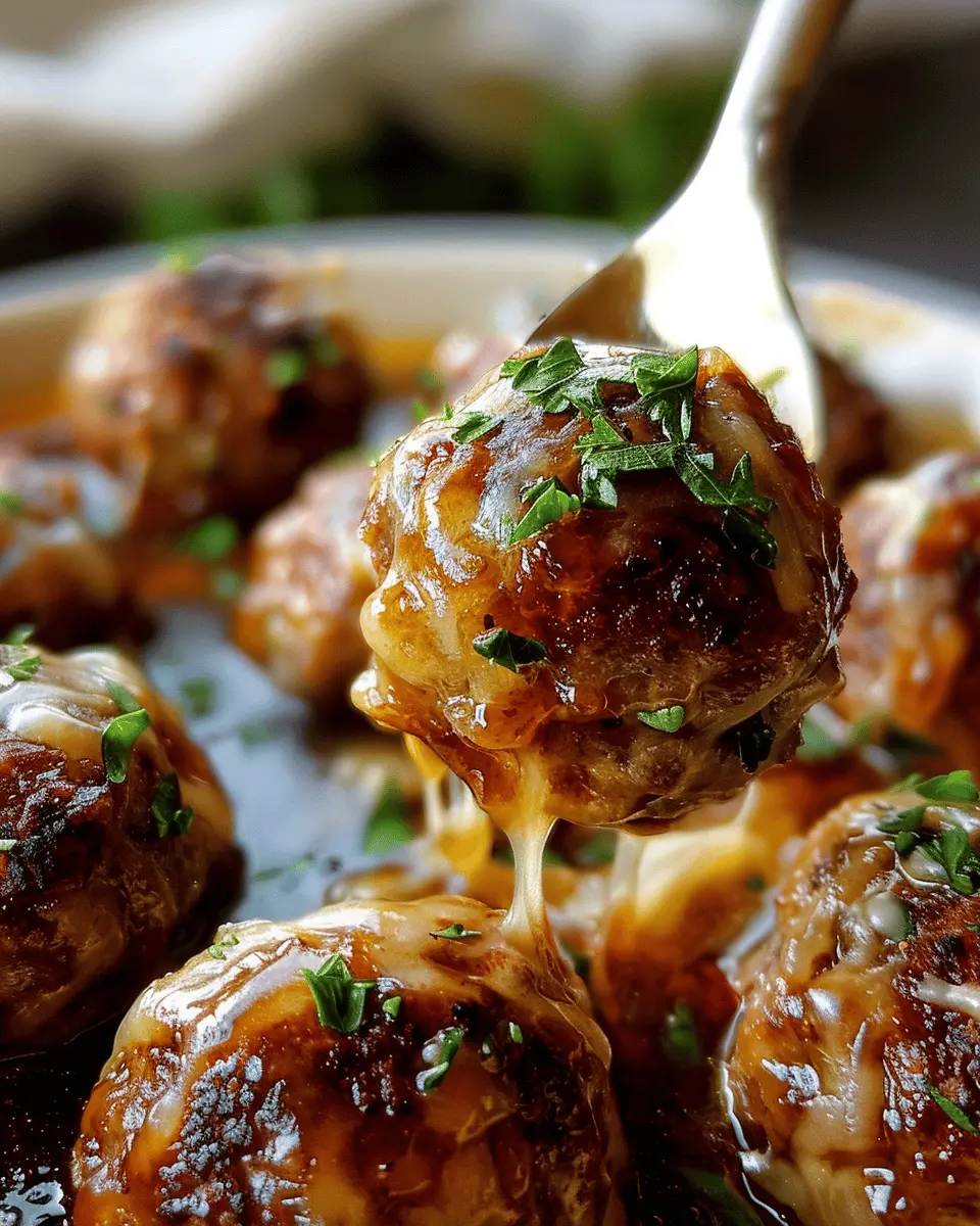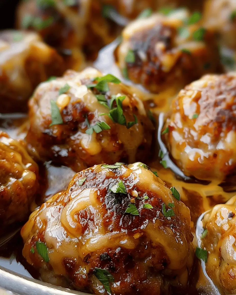 PrintCrockpot French Onion Meatballs: Savory Joy with Turkey Bacon