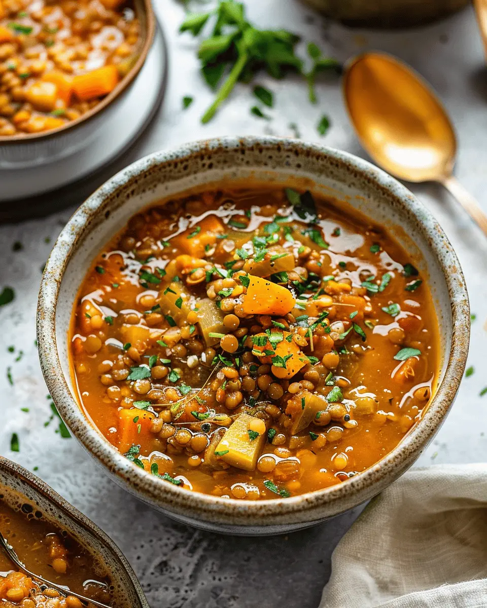 A hearty and flavorful vegan lentil soup that’s perfect for those chilly days.