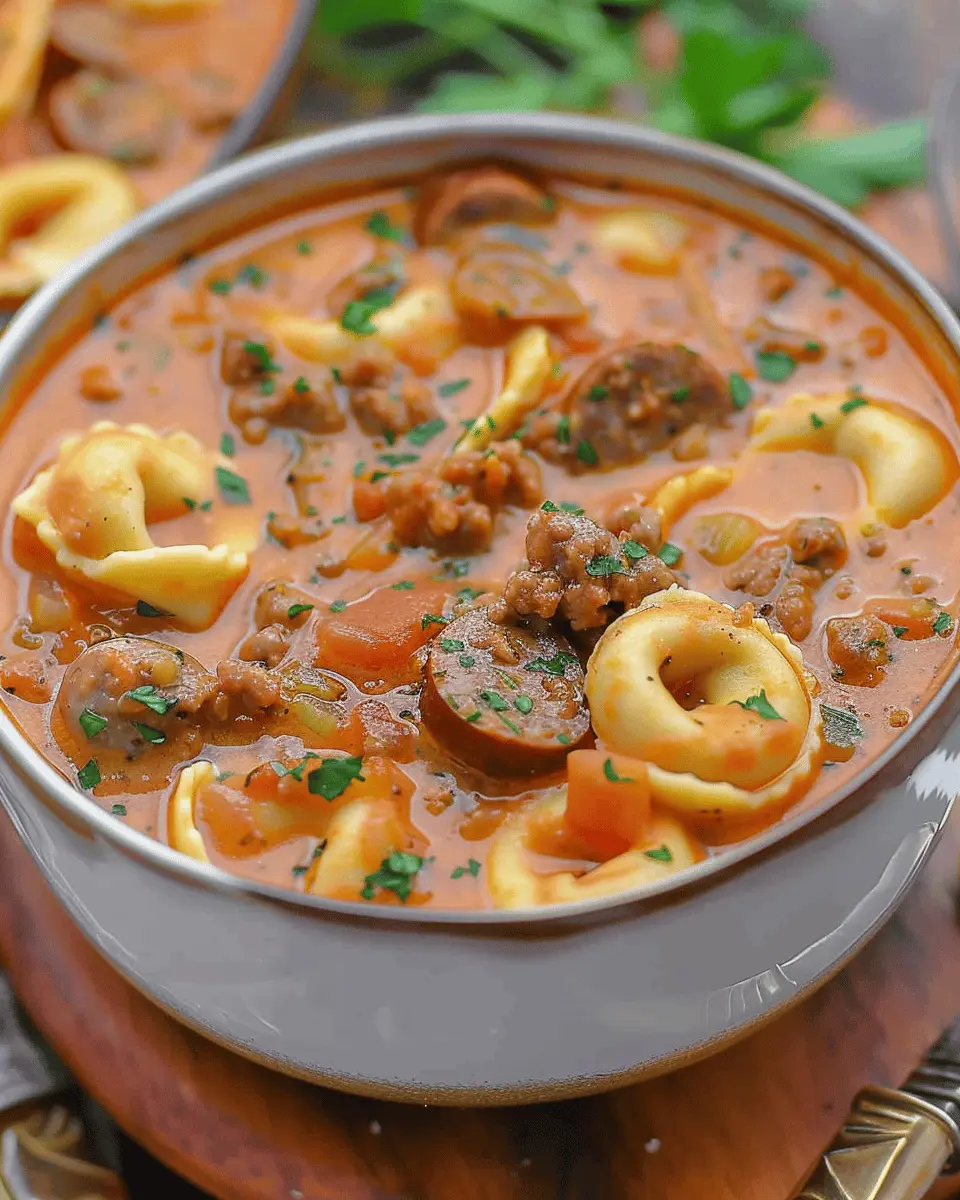 PrintDutch Oven Tortellini Soup with Sausage: A Cozy Comfort Dish
