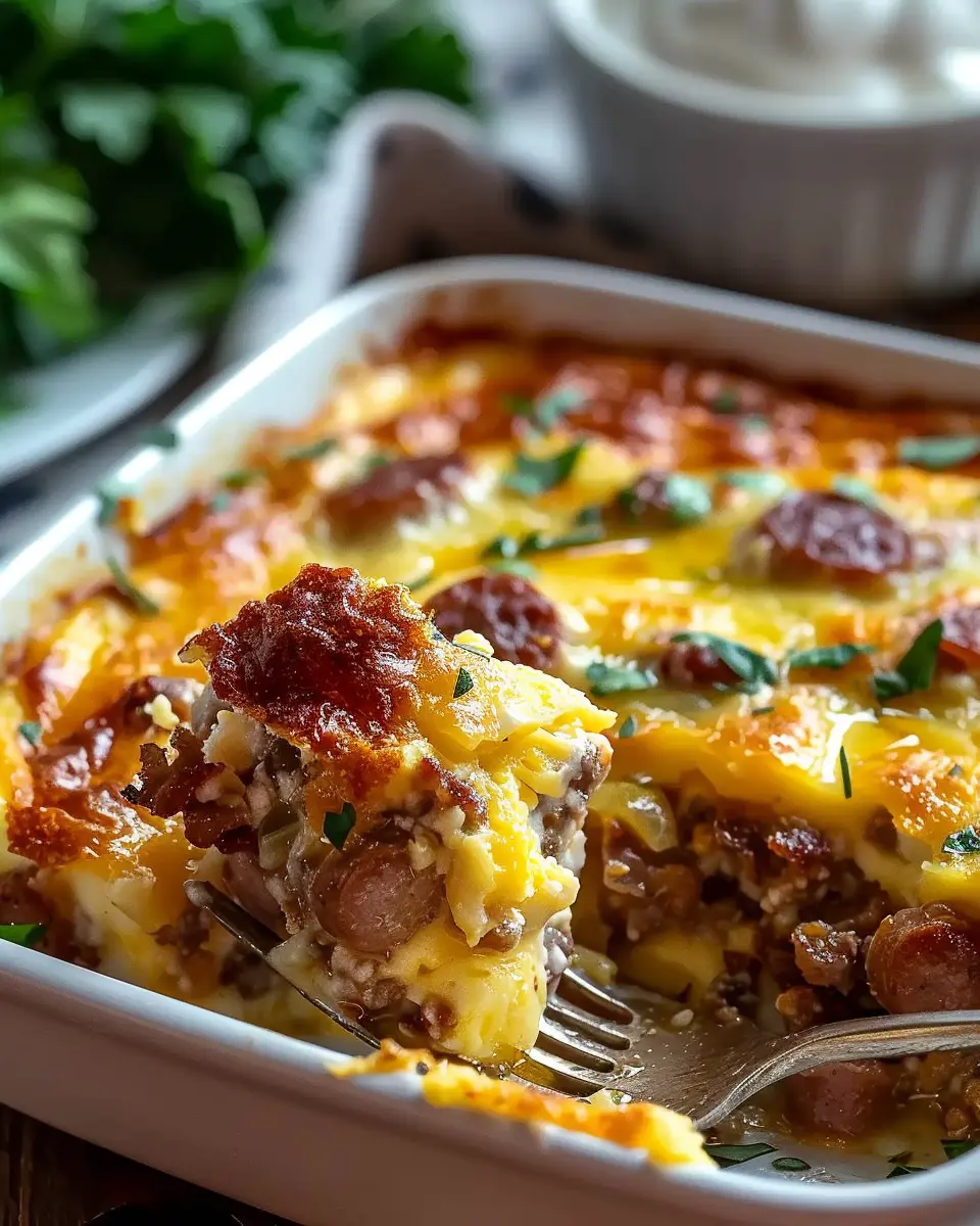 One of the best aspects of this casserole is its versatility. You can easily customize it to fit your taste preferences. Not a fan of beef sausage? Try adding turkey bacon or chicken ham instead! The options are practically endless—think sautéed vegetables, various cheeses, or even spicy seasonings that suit your palate. A great way to sneak in some extra veggies is to add spinach or bell peppers, which can boost nutritional value without compromising flavor.