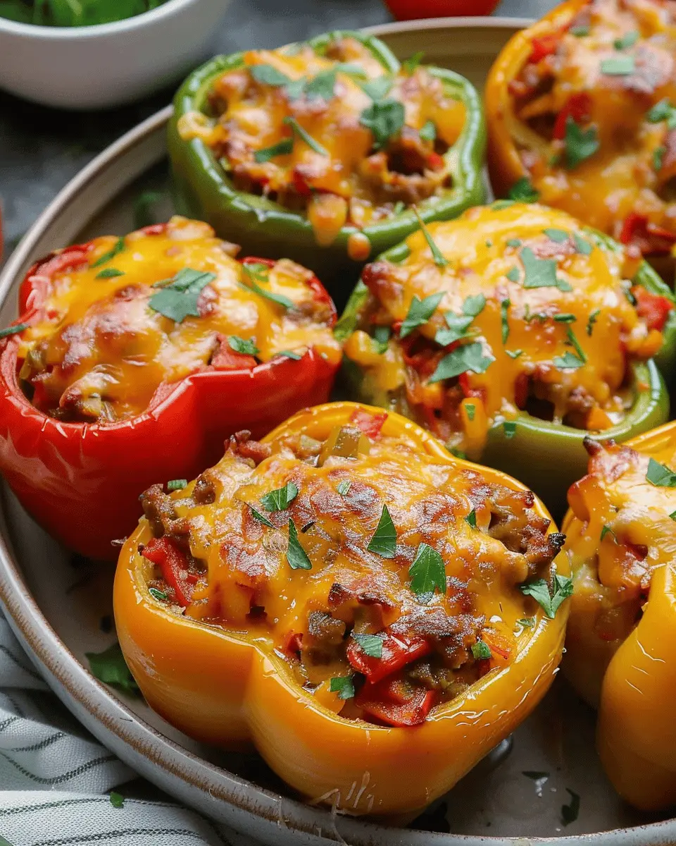 Serve on a Bed of Greens: Place your stuffed peppers on a bed of arugula or spinach for a vibrant base that adds color and nutrition.
