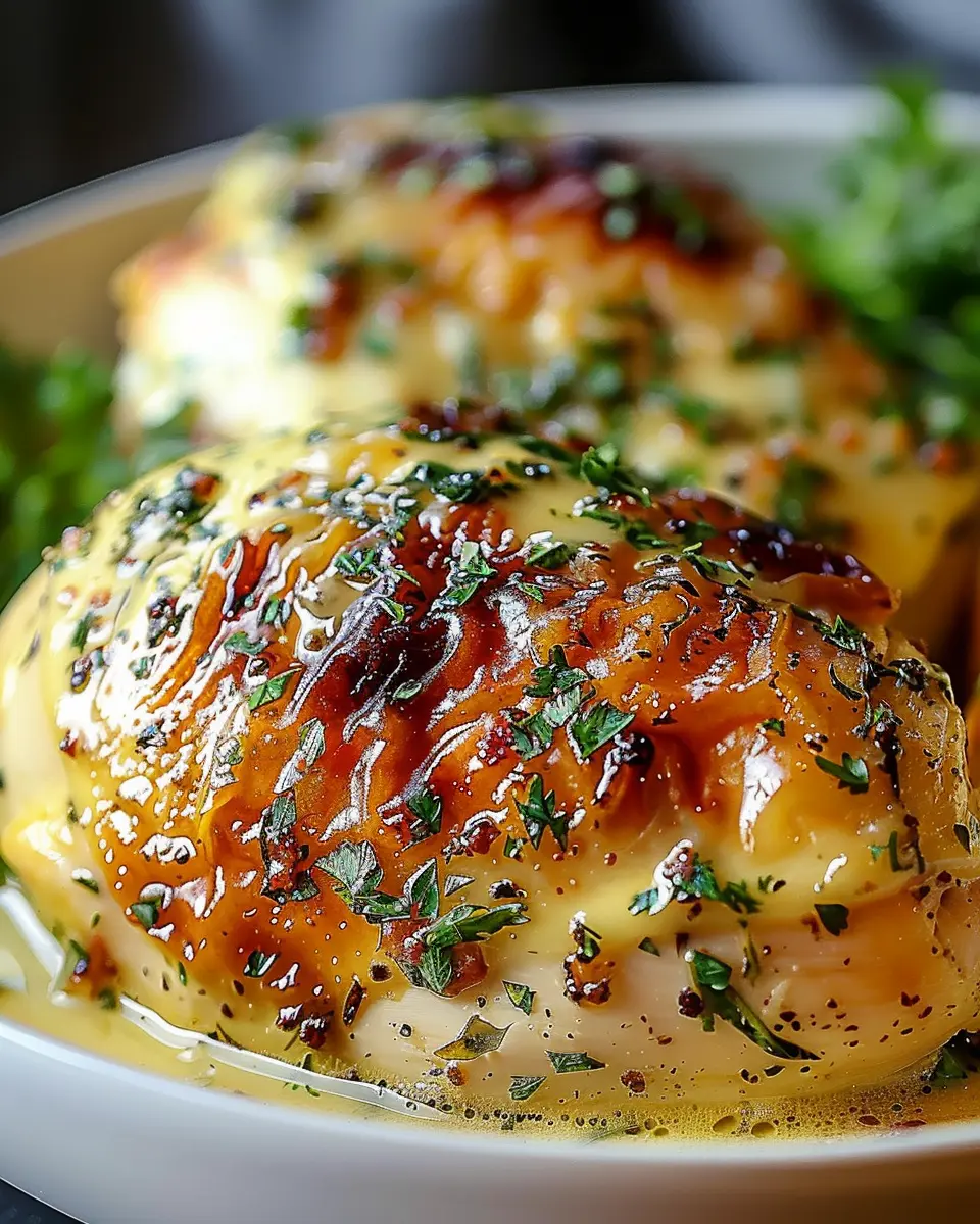 With everything in the baking dish, pop it in the oven and let it work its magic for about 1 hour. The key here is patience; when you allow the chicken to bake to perfection, the flavors meld beautifully. You’ll know it’s ready when the chicken is fully cooked through (internal temperature should reach 165°F or 75°C) and the sauce is bubbling.
