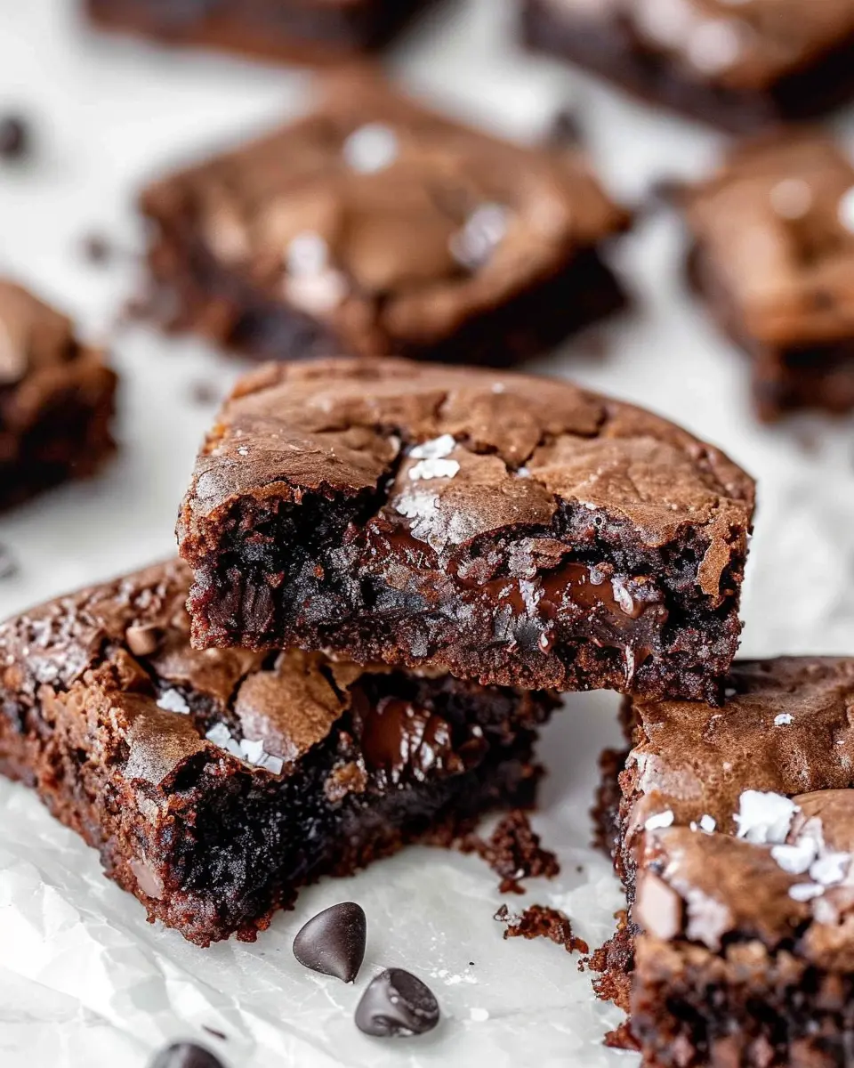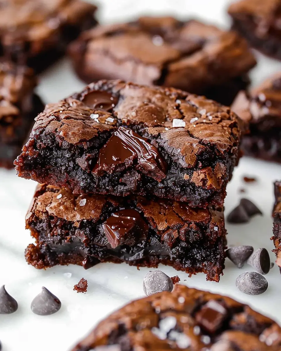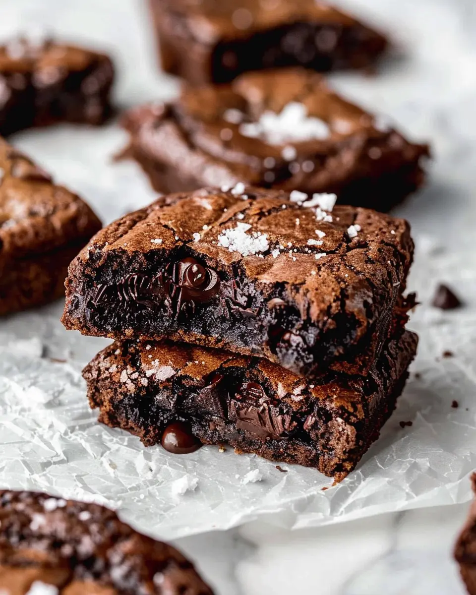 Once baked, allow your fudgy chewy brookies to cool in the pan for about 10 minutes before transferring them to a wire rack. To elevate the flavor, sprinkle a little flaky sea salt on top while they’re still warm. This simple addition will enhance the chocolate flavor and provide a delightful contrast to the sweetness.