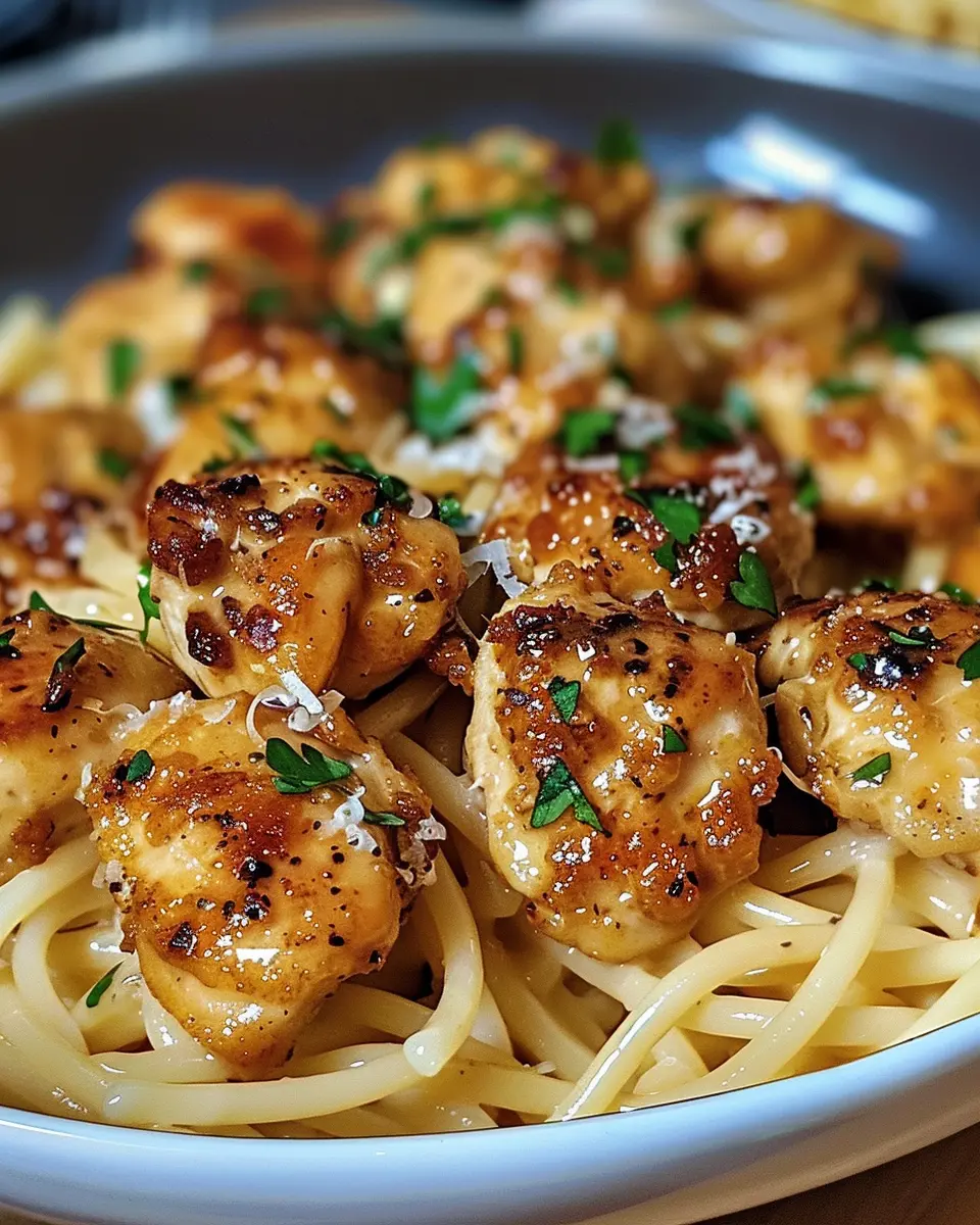 Keywords: Garlic Butter Chicken Bites, Parmesan Pasta, Easy Recipe