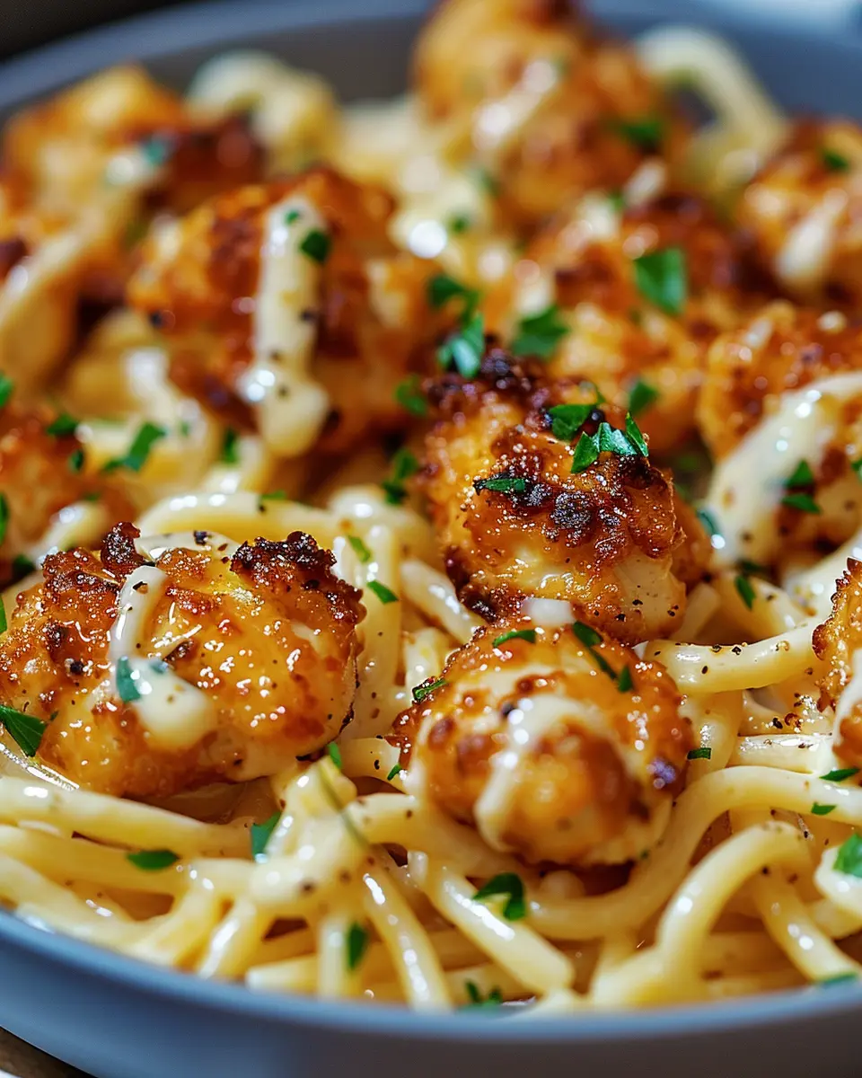 PrintGarlic Butter Chicken Bites: Easy Savory Creamy Parmesan Pasta