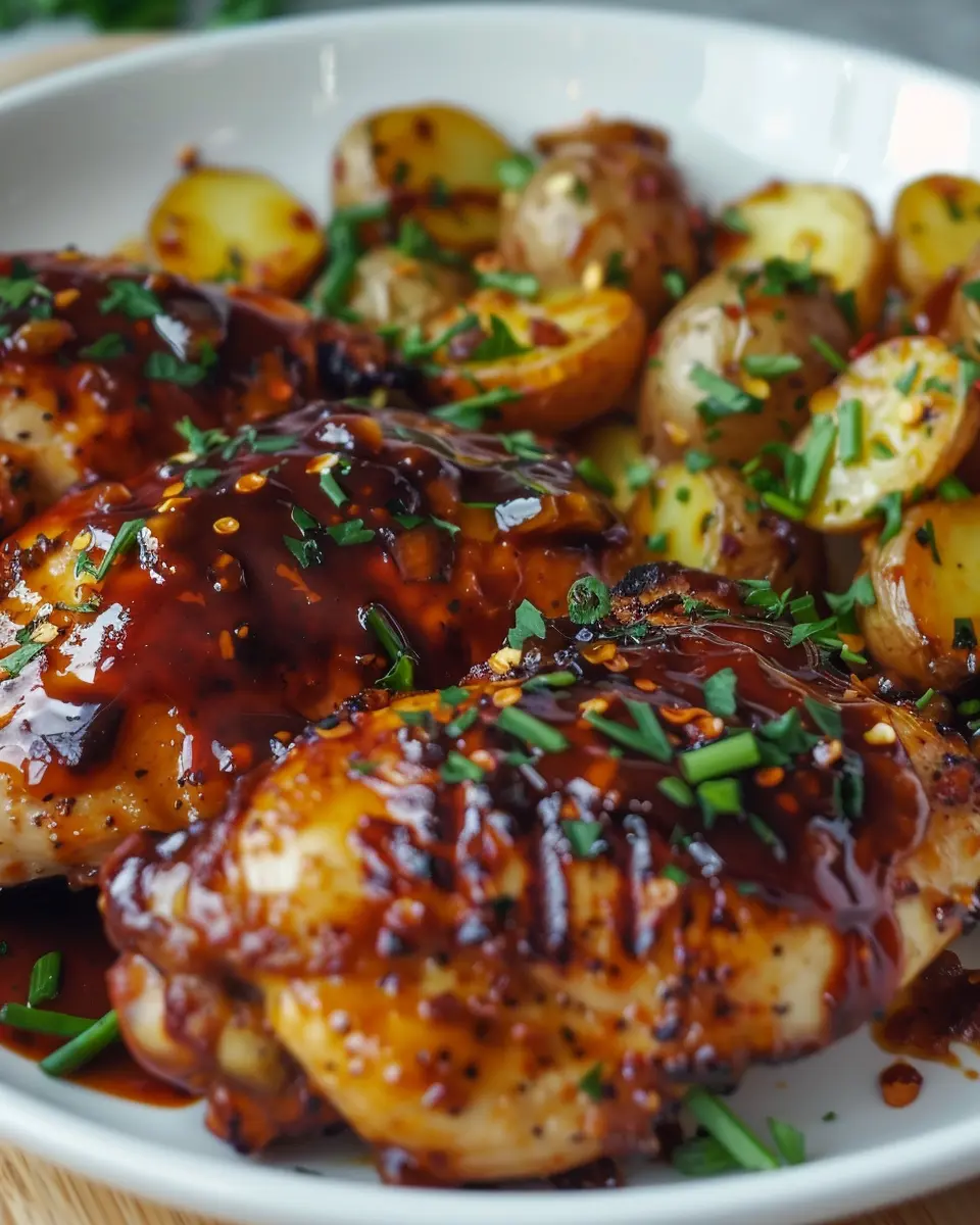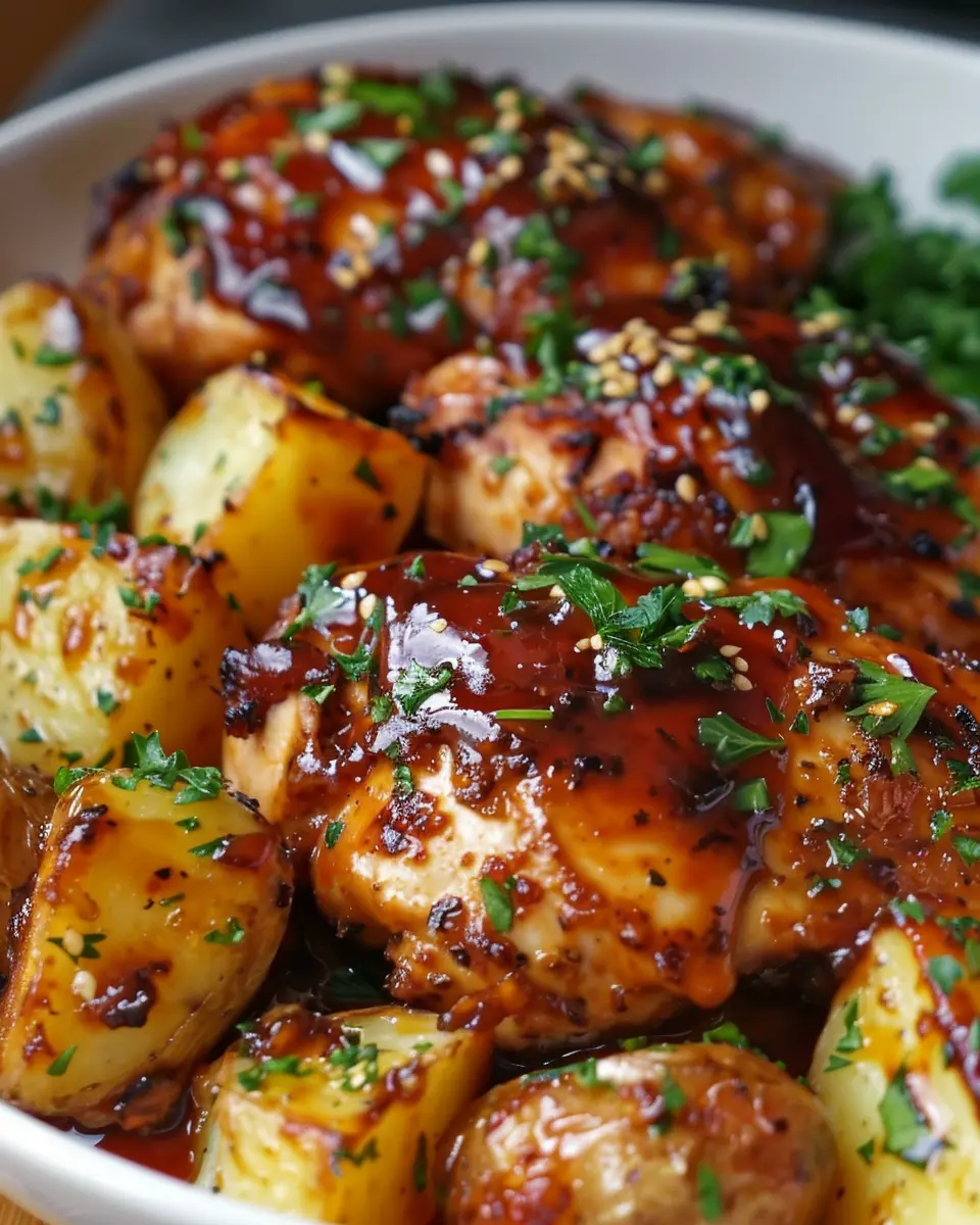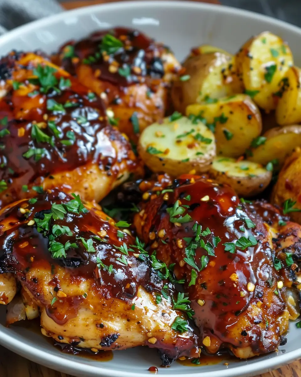 Keywords: Honey BBQ Chicken, Garlic Potatoes, Comfort Dinner Recipe
