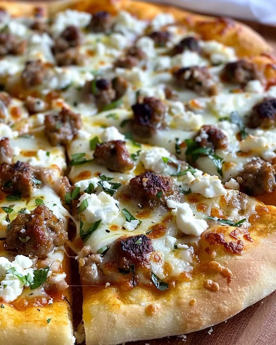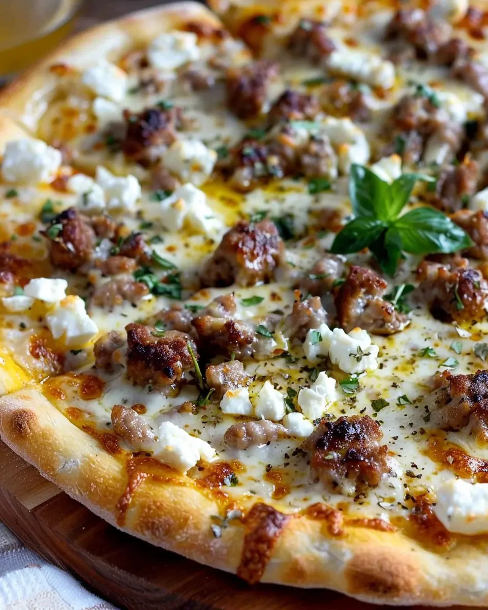 Discover the delicious combination of hot sausage, feta, and honey in this easy gourmet pizza recipe that’s perfect for any occasion.
