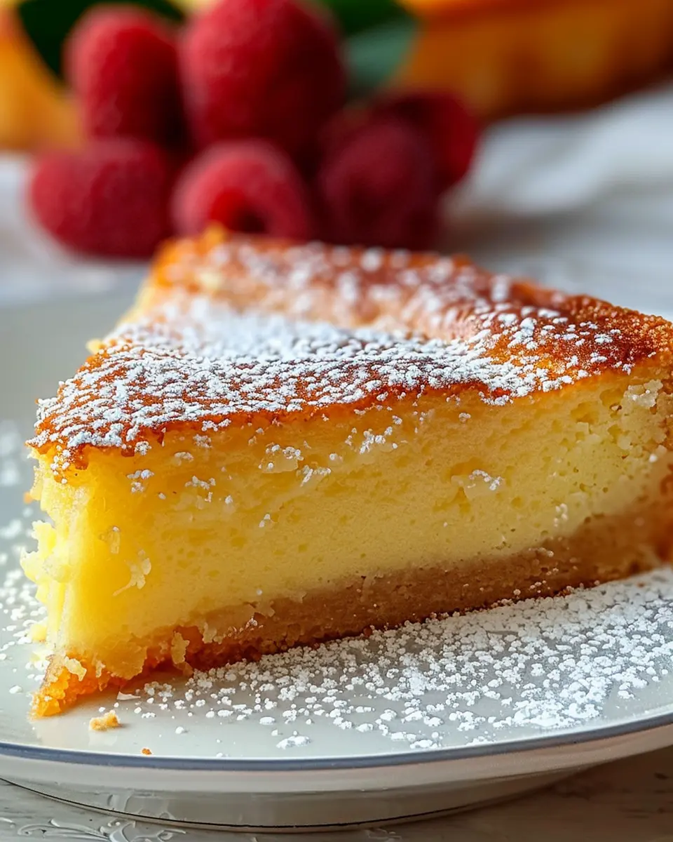 To create a stunning presentation for your Italian Grandma’s Lemon Custard Cake, start with a clean, elegant plate. Place a generous slice at the center and garnish with fresh berries like blueberries or raspberries for a pop of color. A light dusting of powdered sugar can add a touch of refinement, while a dollop of whipped cream can introduce a creamy element that complements the zesty custard. For an even more appealing look, consider using a sprig of mint as a final touch—this will not only add freshness to the appearance but also a fragrant aroma.