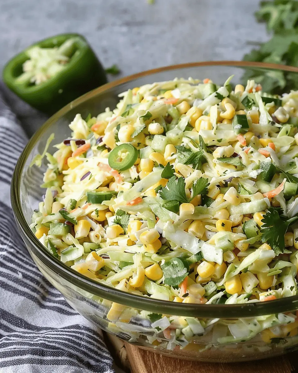 And there you have it—a delicious, crunchy jalapeno corn coleslaw that’s perfect for any occasion! Don’t forget to share this recipe with your friends or keep it handy for your next gathering! Enjoy!