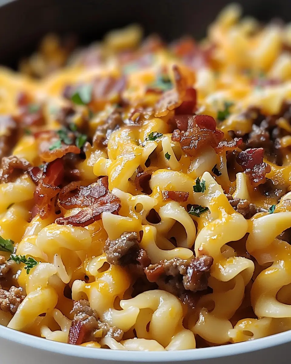 Keywords: Loaded Bacon Cheeseburger Pasta, Turkey Bacon, Comfort Food