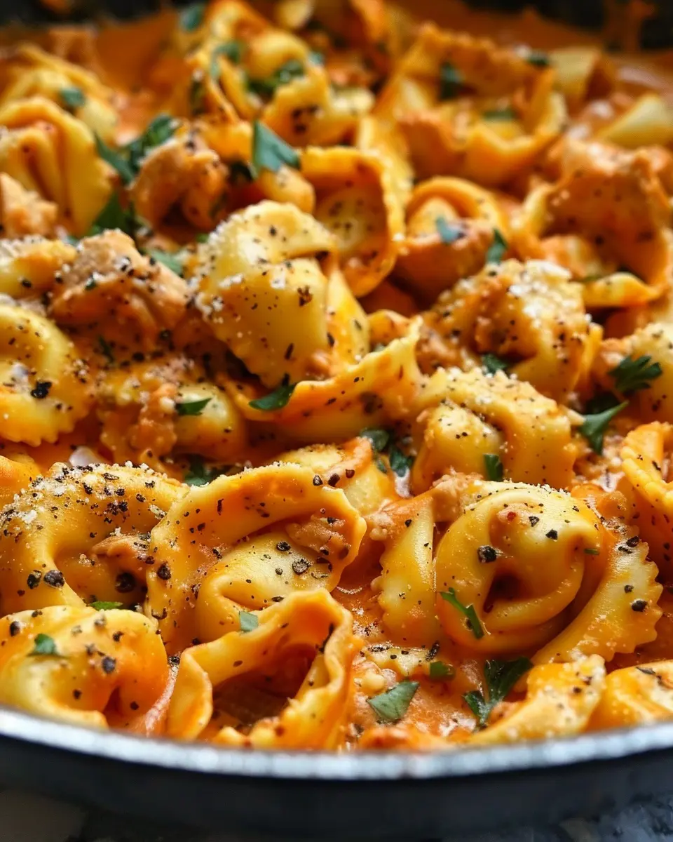 Step-by-step preparation of One-Pot Spicy Garlic Butter Chicken Tortellini