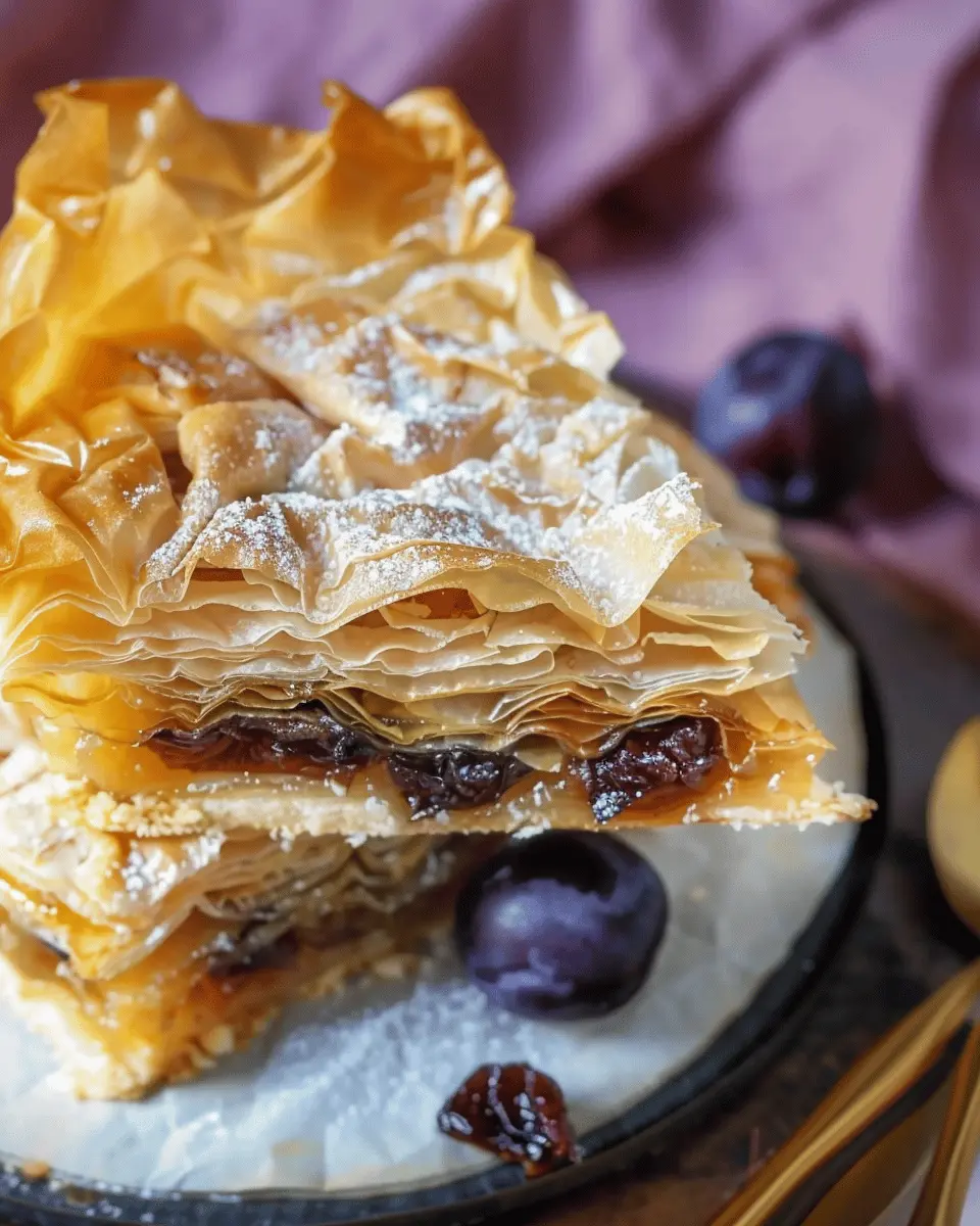 Let’s not forget the preparation, which is straightforward despite looking impressive. You’ll feel like a pro in the kitchen as you layer the phyllo, fill it with your apple-prune mixture, and bake it to a crispy golden perfection. Serve it warm with a scoop of vanilla ice cream, and you’ll have a dessert that will have your friends raving.