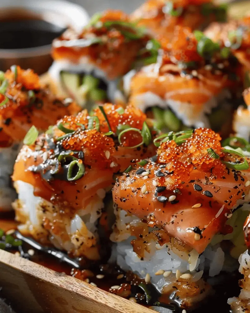 The final touches can elevate your spicy salmon sushi bake recipe from good to great.