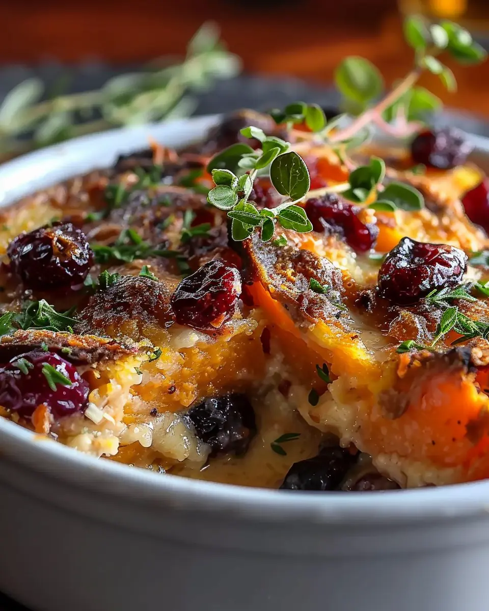 Let’s talk about how to jazz up your Sweet Potato & Cranberry Gratin. Feel free to toss in some fresh herbs, like rosemary or thyme, which can elevate the dish to new heights. If you’re craving a bit of crunch, consider incorporating nut toppings or crispy turkey bacon for a smoky flavor. Alternatively, adding seasonal vegetables like sautéed kale or roasted Brussels sprouts can provide wonderful texture and nutrition.