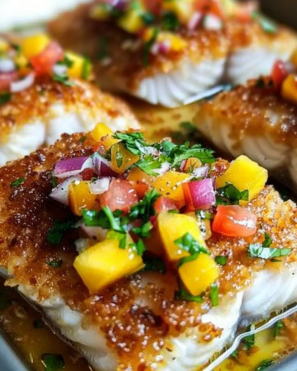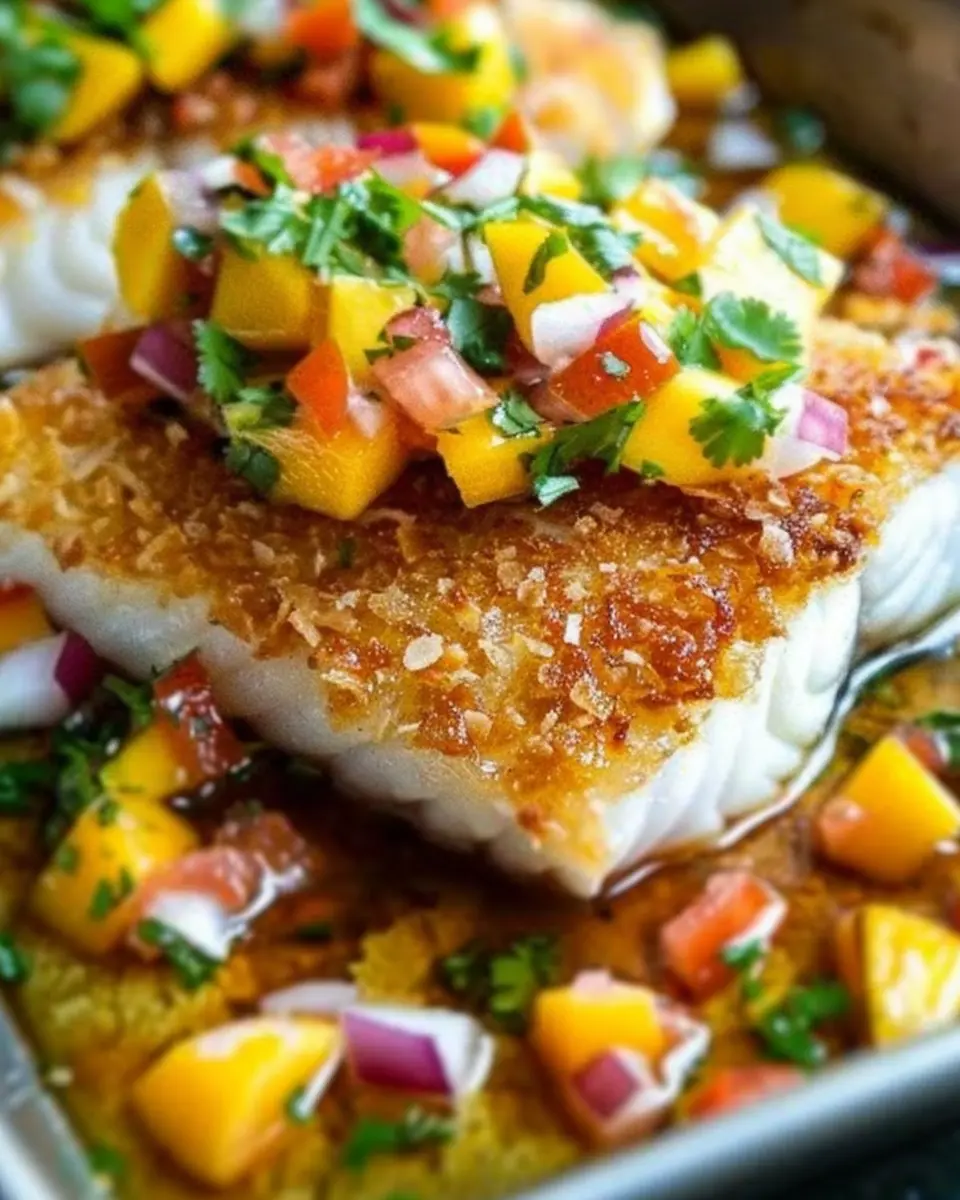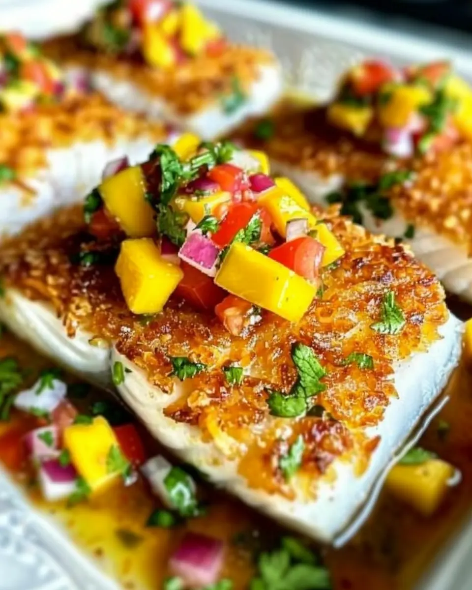 PrintTropical Coconut Crusted Fish: A Juicy Delight with Mango Salsa