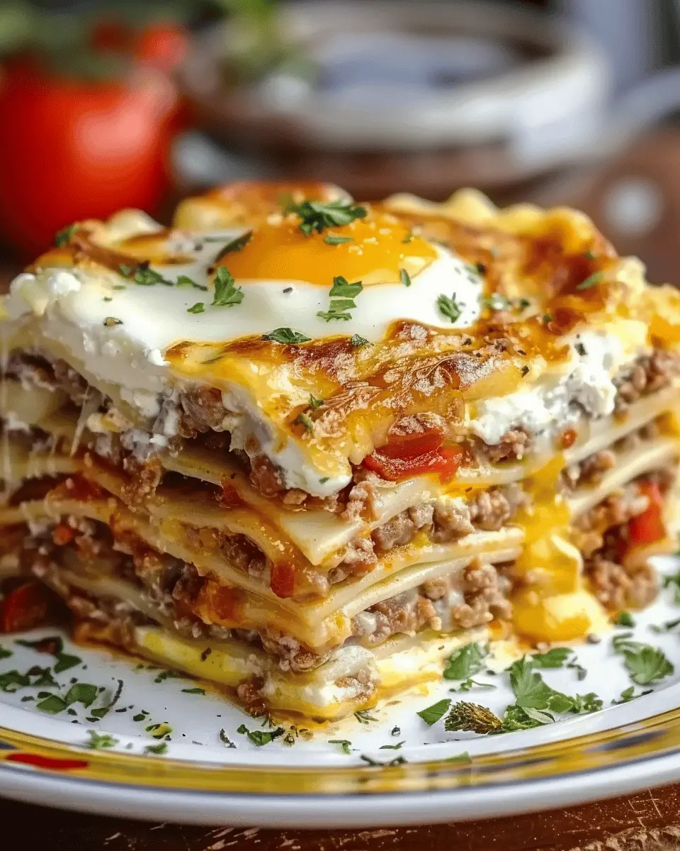 PrintUltimate Breakfast Lasagna: An Easy & Indulgent Family Treat